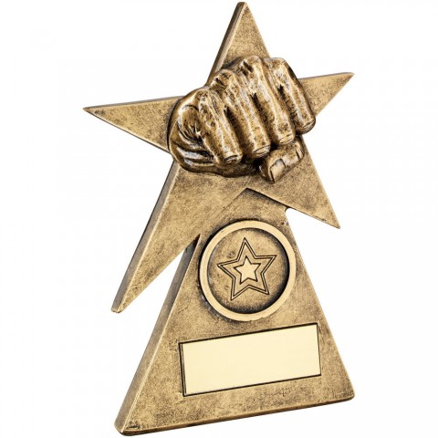 BRZ/GOLD MARTIAL ARTS STAR ON PYRAMID BASE TROPHY - (1in CENTRE) - 6in