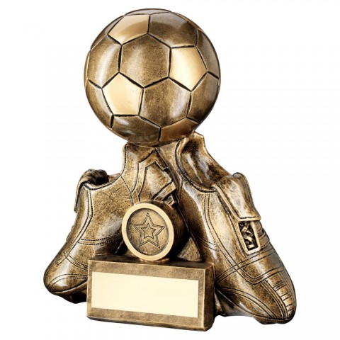 BRZ/GOLD TWO FOOTBALL BOOTS WITH BALL TROPHY (1in CENTRE) - 5.5in